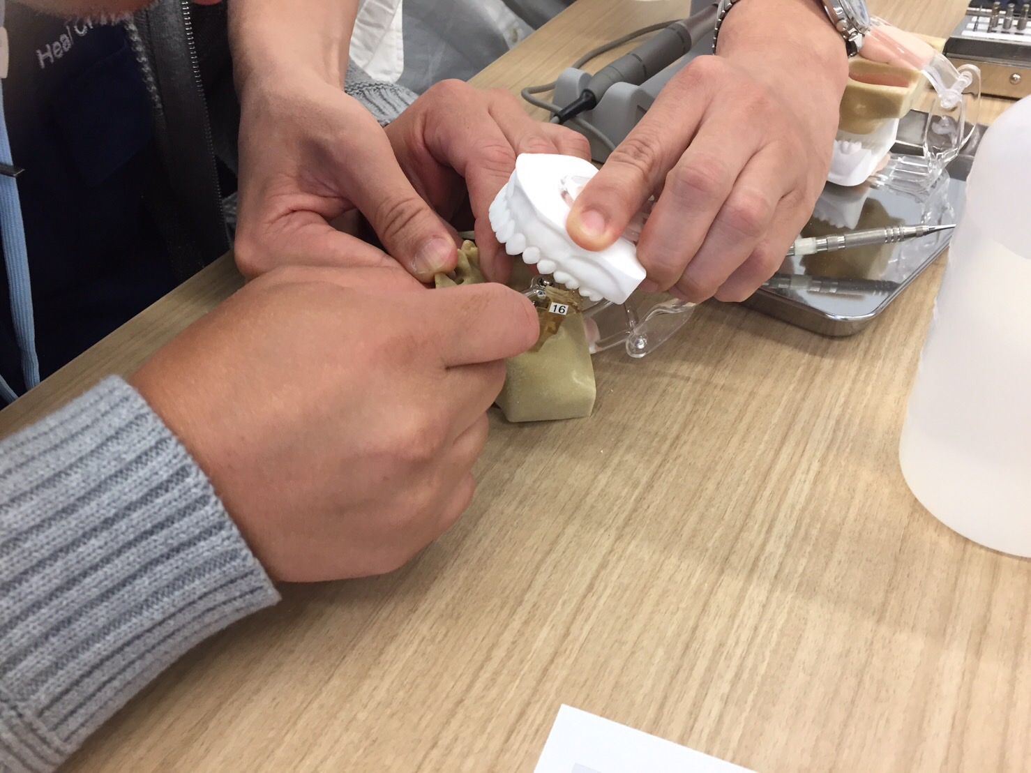 オステオプッシャーという水口先生の開発されたインプラント手術の器具の使い方や実習もありました。