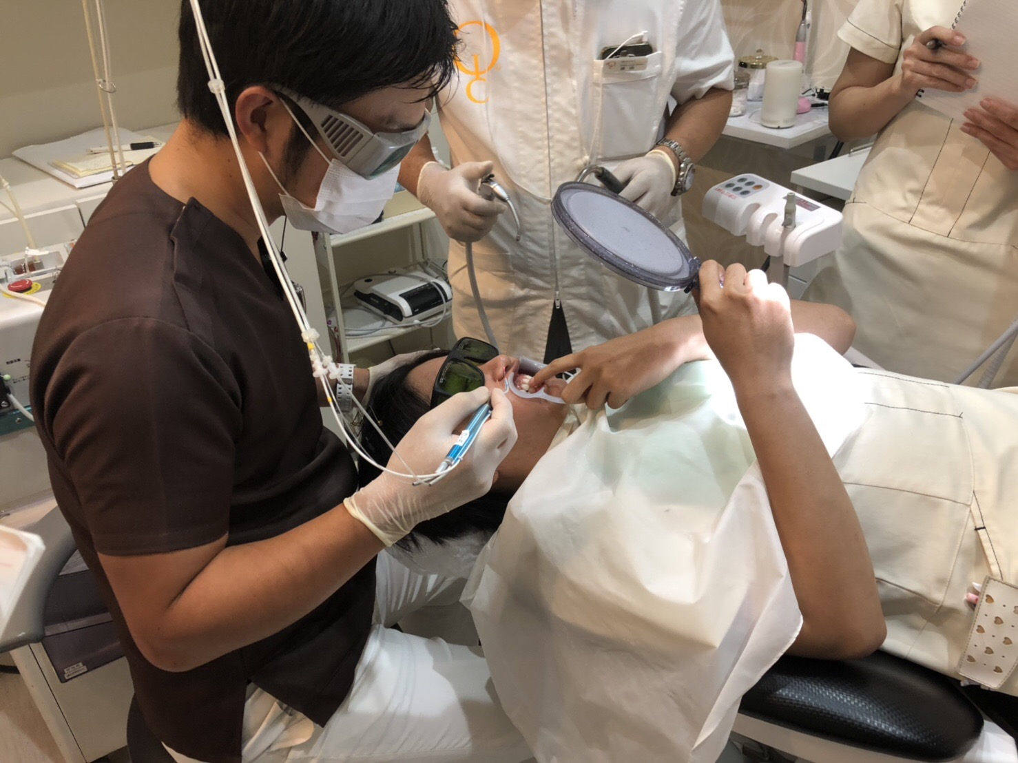 また、スタッフみんなで最新のレーザー治療の知識と経験をしてもらうために午後は実習をしました。