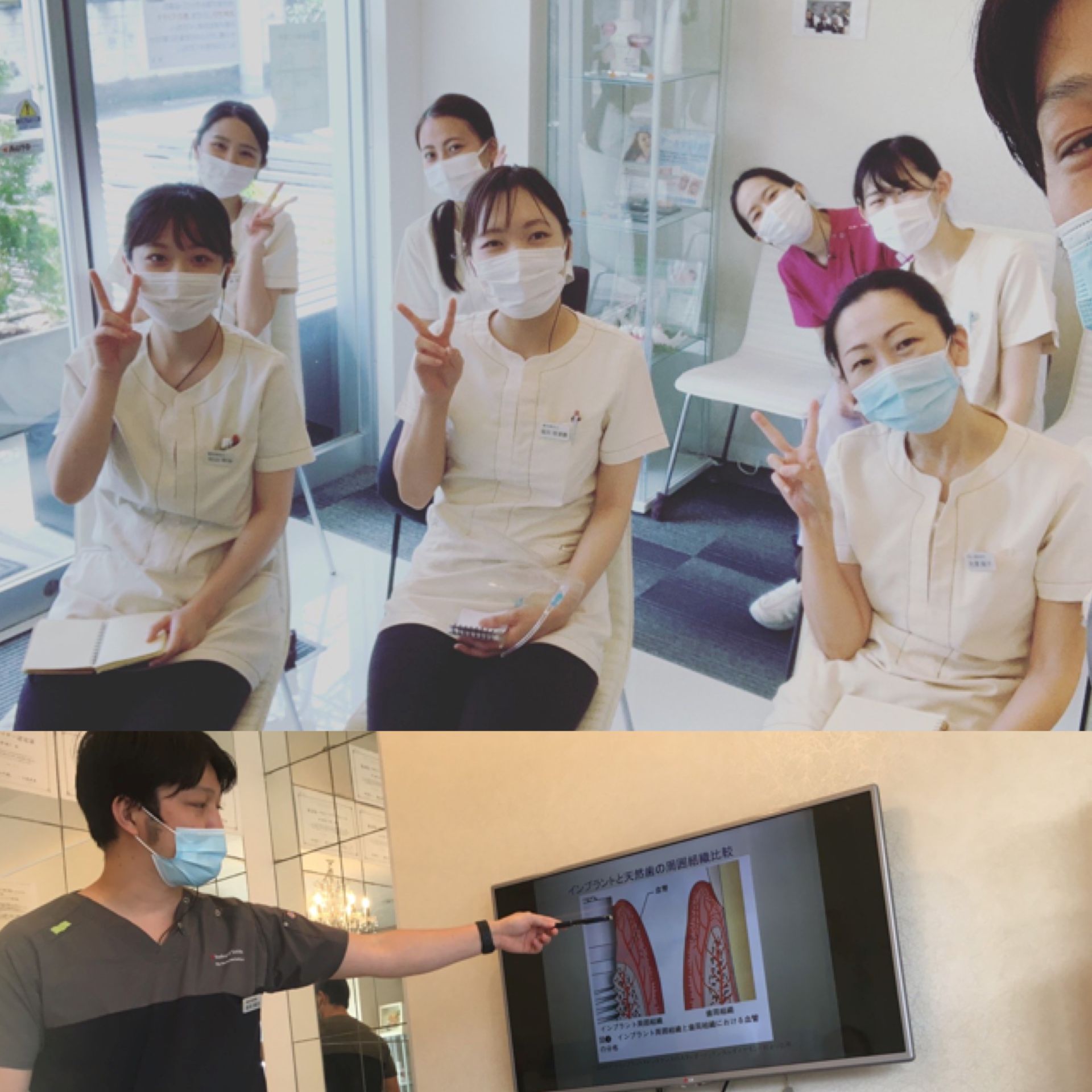 先日、院長先生とチーフからインプラントについての勉強会を開いていただきました!天然の歯とインプラントの構造の違いについて、メンテナンスの術式などたくさん学ぶことができました^^