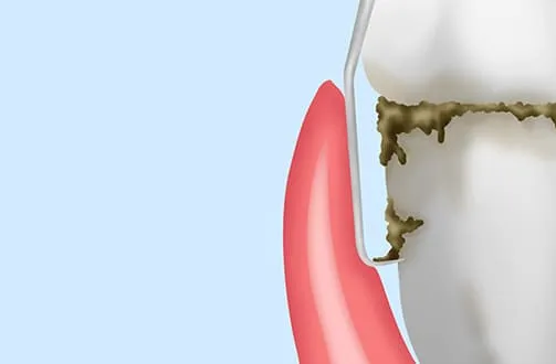 キュレットと呼ばれる専用器具を使い、スケーリングで落としきれない歯周ポケットの中の歯石を取り除きます。処置後は表面を滑らかに仕上げ、汚れの再付着を防ぎます。